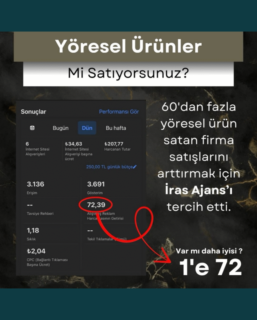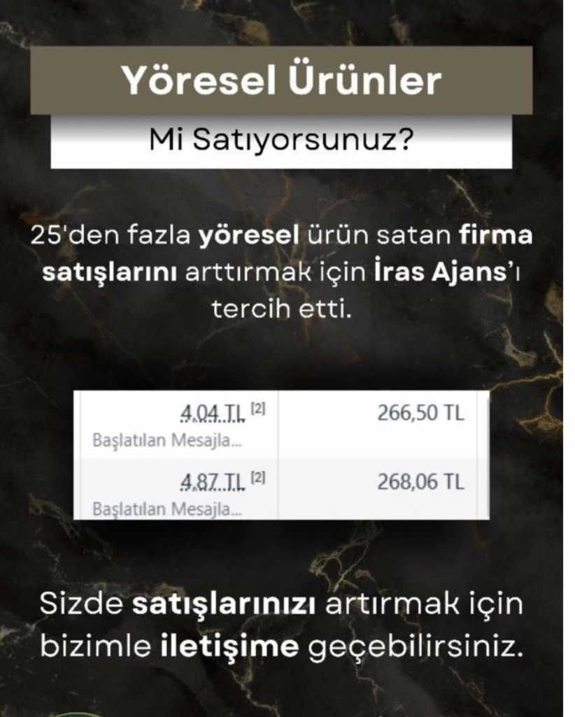 Evet. İRAS Ajans olarak yalnızca yöresel ürün üreticileri ve satıcılarına hizmet veriyoruz. Bu sayede hedef kitlenizi çok iyi tanıyor, onların ilgisini çekecek reklam görselleri ve metinleriyle doğrudan potansiyel müşterilere ulaşıyoruz.